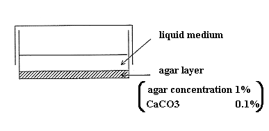 A solution: Glucose 0.15 g, Na-acetate 0.15 g, (NH4)2SO4 0.05 g, MgSO4/7H2O 0.025 g, KCl 0.025 g, CaCO3 0.025 g, Agar-extract 100 mL (20 g of agar powders is added to 1,000 mL distilled water, and then keep still overnight in room temperature. The supernatant is filtered by GFC.), distilled water 900 mL.