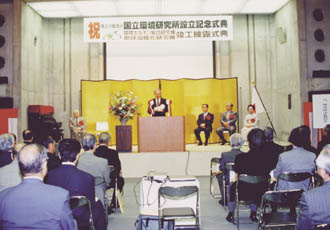去る5月30日,国立環境研究所が独立行政法人として新たに出発したことを記念して,設立記念式典が国立環境研究所大山記念ホールで開催された。また,整備を進めていた「環境ホルモン総合研究棟」及び「地球温暖化研究棟」が本年3月に竣工したことから,併せて両棟の竣工記念式典が行われた。