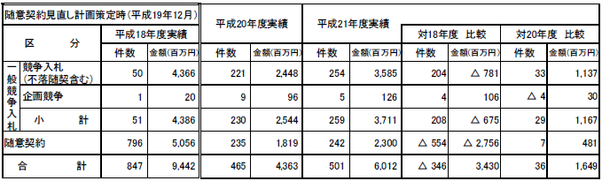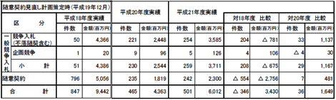 19年12月に策定した「随意契約見直し計画」については、20年度時点において目標を達成済である。