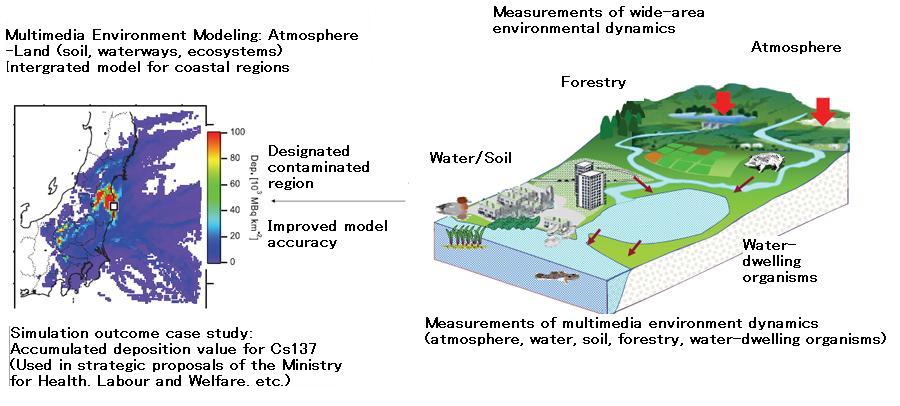 In order to understand the behavior of radioactive substances in multimedia environments in the atmosphere, on land and in coastal regions, we constructed a multimedia environments simulation model, utilizing measurement data for wide-area environmental dynamics for verification and research.
