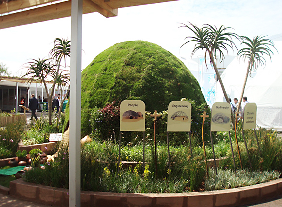 今日は、オブザーバーが傍聴できる会合が少なく、間もあいていたので、空き時間 に敷地内を散歩してみました。敷地内には、外見がユニークな展示がいくつもあるのですが、詳しい説明がないものが多く、記事にすることができなくて残念です。そのうちのひとつをご覧に入れたいと思います。