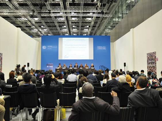 COP18/CMP8の参加登録者数は、11,314人だそうです。内訳を見ると、政府:4,874名、国連関係者:353名、専門機関等:160名、国際機関:439名、NGO:4,727名、メディア:761名、となっています。私は、国立環境研究所から参加登録をしており、上記区分では、NGOに含まれます。