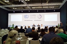 2019年12月2日(月)から13日(金)まで、スペインのマドリードにおいて、気候変動枠組条約第25回締約国会議、京都議定書第15回締約国会合及びパリ協定第2回締約国会合(COP25/CMP15/CMA2)が開催されました。 COP25における国立環境研究所の取り組みについて 現地からの写真 関連リンク COP25における国立環境研究所の取り組みについて COP25の概要と残された課題社会環境システムセンターTOPIC 気候危機』—パリ協定のゆくえ[前編] 「COP25、ここがみどころ」社会対話・協働推進オフィス 地球温暖化対策を話し合う国連の会議「COP25」からのたより(その1)地球環境研究センター 地球温暖化対策を話し合う国連の会議「COP25」からのたより(その2)地球環境研究センター 地球温暖化対策を話し合う国連の会議「COP25」からのたより(その3)地球環境研究センター 地球温暖化対策を話し合う国連の会議「COP25」からのたより(その4)地球環境研究センター 環境サイト検索環境展望台 ページの先頭へ戻る 現地からの写真 ページの先頭へ戻る 関連リンク アジア太平洋統合評価モデル(AIM) 脱温暖化2050研究プロジェクト 国立環境研究所 GOSATプロジェクト 国立環境研究所 GOSAT-2プロジェクト (英文) 国立環境研究所 温室効果ガスインベントリオフィス(GIO) 国立環境研究所 地球環境研究センター(CGER) 温室効果ガストレンドアップデート(GGTU) 気候変動対策の進捗評価を目的とした指標開発に関する研究 気候変動枠組条約(UNFCCC)ウェブサイト(英文) 国連気候変動枠組条約事務局 COP25公式サイト(英文)