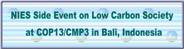 The National Institute for Environmental Studies (NIES) and the Ministry of the Environment of Japan co-hosted a side event entitled: “Low-Carbon Asia: To be or not to be (How to Align Climate Change and Sustainable Development)” at the Thirteenth Conference of the Parties to the United Nations Framework Convention on Climate Change (UNFCCC) and the Third Meeting of the Parties to the Kyoto Protocol (COP13/CMP3) in Bali, Indonesia. The event included presentations by researchers from Asia (China, India, Indonesia, Japan, Nepal, and Thailand) and Great Britain and a panel discussion on feasible low carbon society measures that can be adopted by both developed and developing countries.