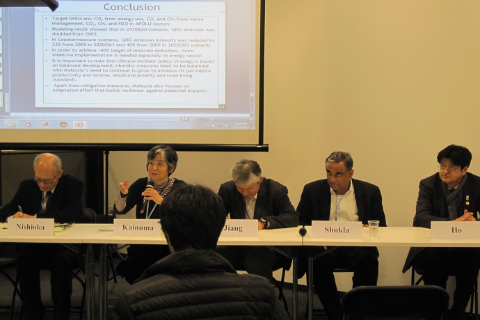 At this event, following Opening Remarks by Kotaro Kawamata, Director, International Cooperation Office, the Ministry of the. Environment, Japan, Shuzo Nishioka, Secretary General of LoCARNet introduced their activities. Mikiko Kainuma, a Fellow from the Center for Social and Environmental Systems at NIES gave a speech on "Asia’s Low Carbon Future: Can Asia Change the World through Leapfrogging?", presenting research outcomes under the Environment Research and Technology Development Fund (S-6). Jiang Kejun and P.R. Shukla presented on reduction potentials towards achieving the two degree stabilization target for China and India, respectively. Ho Chin Siong introduced a Malaysian low carbon society scenario vision for 2020 and 2030. This was followed by a panel discussion on "How can Asia reduce GHG emissions for the two degree target?" and an opinion exchange involving each panelist and the audience.