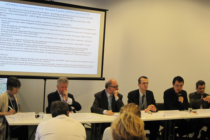 At this event, following Opening Remarks by Junichi Shiraishi, Vice-Minister for Global Environment at the Ministry of the Environment Japan, Mikiko Kainuma, a Fellow from the Center for Social and Environmental Systems at NIES, and Sergio La Motta from the National Agency for New Technologies and the Environment (ENEA), Italy reported on the LCS-RNet 5th Annual Meeting held in Yokohama in July 2013 as co-chairs of that meeting. Subsequently, Jean Charles Hourcade from the International Research Center on Environment (CIRED), France delivered a Special Report on "Triggering Finance for a Low-Carbon Transition".