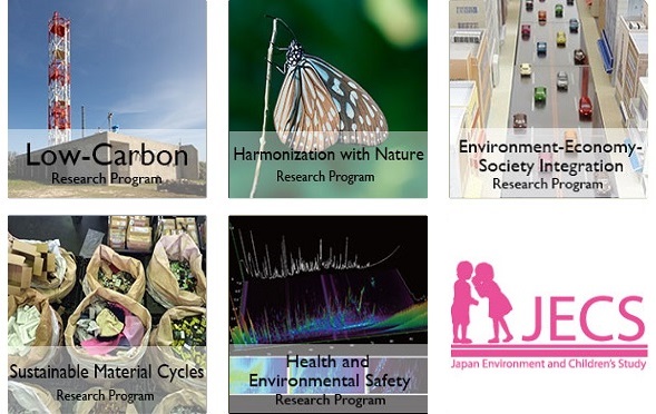 The earth environmental studies include three problem-solving research programs: Low-Carbon Research Program; Harmonization with Nature Research Program; Environment-Economy-Society Integration Research Program. The risk studies include two problem-solving research programs: Sustainable Material Cycles Research Program; Health and Environmental Safety Research Program. They include one of the environmental research infrastructure, Japan Environment and Children’s Study (JECS). These 6 research programs (also shown below in 6 squares) were reported.