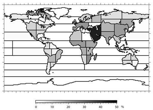 It has been confirmed that uncertainties in CO2 flux estimates can be reduced by as much as 40% (annual average) with the addition of GOSAT data to the ground-based monitoring data. In particular, uncertainties of CO2 fluxes estimated for regions that are not covered by the ground-based monitoring network (e.g. the western seaboard regions of central Africa, southeastern Africa, the Middle and Near East, and India) were reduced by 20-30% (Figure 2). Thanks to these reduced uncertainties, it has become more definite that whether these "blank" regions serve as net sinks or sources of CO2.