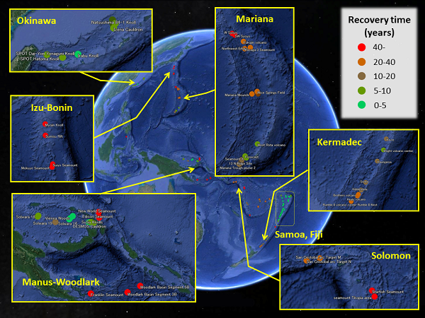 Mapping the resilience of chemosynthetic communities in hydrothermal vent fields around the western Pacific Ocean