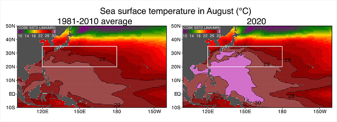 August 2020 set new record high sea surface temperatures (SSTs) in the northwestern Pacific Ocean and around the Japan coasts. A new study led by National Institute for Environmental Studies (NIES) researchers revealed that this warming record could not happen without human-induced climate changes.