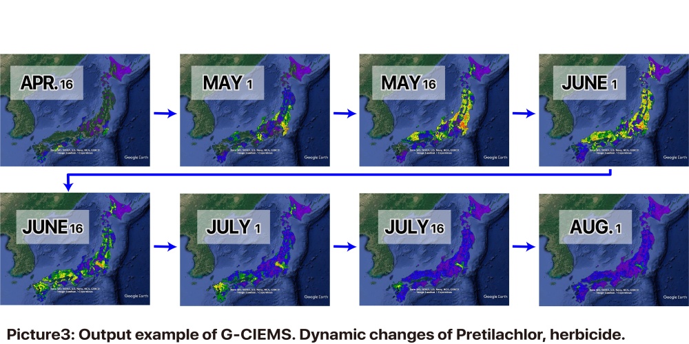 ”In this process, we can, for example, simulate how the seasonal concentration of pesticides used in rice fields changes in rivers or understand the movement of radioactive materials from nuclear accidents.”