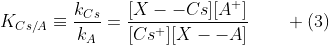 A+イオンに対するCs+イオンの選択係数KCs/Aは式(3)で定義されます。