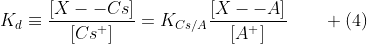 吸着体をX--とし、イオンAとCsが交換する反応を式(1)に示します。