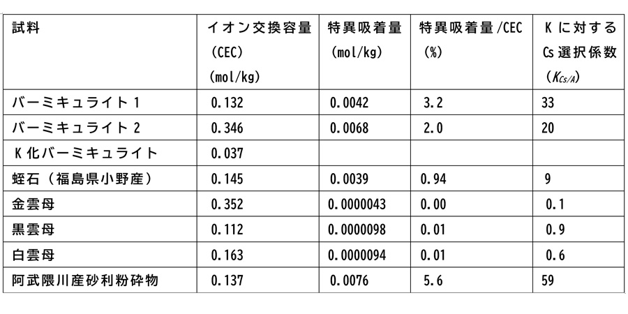 また、阿武隈川の砂利のCs交換容量が南ア産のバーミキュライトと同等であることは驚きです。