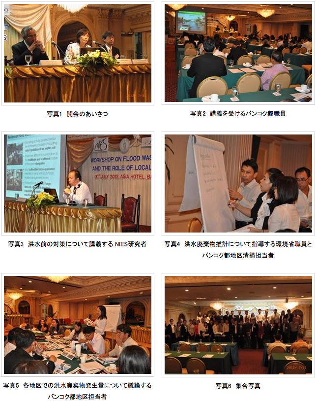 平成24年7月31日から8月1日まで、(独)国立環境研究所 資源循環・廃棄物研究センターは、タイ国バンコクにおいて「バンコク都清掃職員向け洪水廃棄物ワークショップ」を開催しました。
