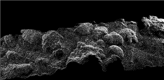 本システムは、小型フロートボートの左右に配置した水中ビデオカメラで海底の撮影を行います(図1~3)。フルハイビジョン(1920x1080画素)のビデオカメラを用いることで、水深5m程度での観測時には1cmよりも細かい解像度で撮影が可能です。また、同一の観測対象を左右のビデオカメラでステレオ撮影することにより、対象の三次元形状を数値化し、三次元モデル(DSM:Digital Surface Model)を作成することが可能となります(図4)。