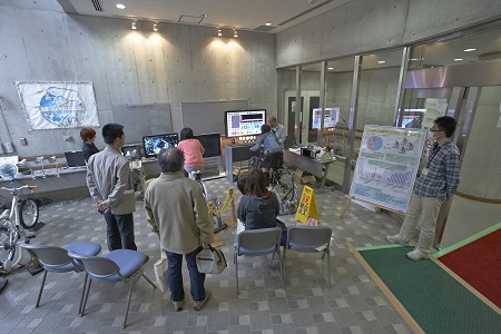 講演会では「大気中の微粒子の動きを捉える」、「環境化学物質と健康」など、関心の高い話題を取り上げ、さらにパネルディスカッション「ココが知りたい生パネル そうだったのか地球温暖化」では、多くの皆様にご参加いただきました。研究者が最先端の環境研究を紹介するパネル・展示では、来場者の皆様が興味深そうに説明を聴いたり、熱心に質問をしている姿がとても印象的でした。また、セグウェイの試乗会、自転車発電などの体験イベントでは、楽しみながら環境の保全について学んでいただく事が出来たと思います。