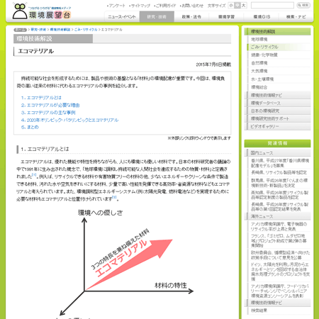 環境展望台に「エコマテリアル」に関する記事を追加しました