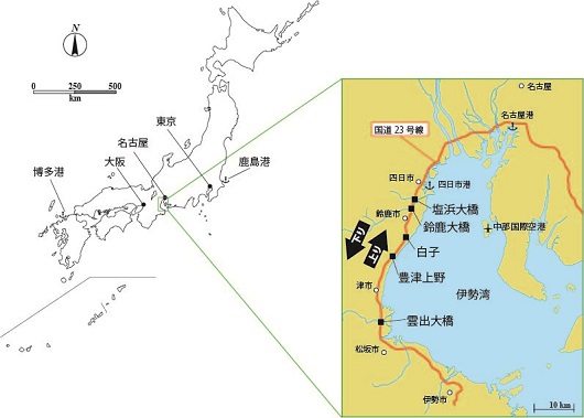 三重県四日市港から松阪方面へセイヨウナタネ種子を輸送する主なルートである国道23号線沿いに5カ所(北から塩浜大橋、鈴鹿大橋、白子、豊津上野、雲出大橋)の1~2kmの調査区を設定しました。2009年10月から2013年1月まで1ヶ月に1~2回の割合で道路沿いに生育しているセイヨウナタネの個体数を、下り車線(四日市から松阪へ向かう車線)と上り車線(松阪から四日市へ向かう車線)に分けて計数しました。また、個体数が最大となる時期に、すべての個体から葉の一部を切り取って研究所へ持ち帰り、除草剤耐性タンパク質の有無を免疫クロマトグラフ試験紙により調べました。さらに、除草剤耐性タンパク質が検出された個体からDNAを精製し、除草剤耐性遺伝子の有無をPCR法により増幅して確認しました。