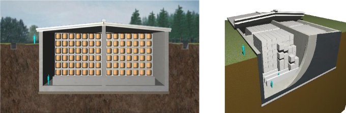 放射能レベルが8千Bq/kg以上の指定廃棄物は、セメント固型化した上で管理型処分場、または遮断型相当の処分場(長期管理施設)への処分、福島県内で10万Bq/kg以上のものは除染廃棄物と合わせて中間貯蔵施設内の廃棄物貯蔵施設に保管されることが予定されています。上記のコンクリート容器は従来の遮断型相当の最終処分場と同等の廃棄物を外部環境から遮断する性能を有しており、水密性の観点からは小型の遮断型最終処分場ともいえるものです。