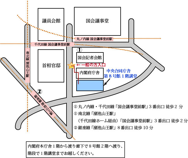 中央合同庁舎第8号館1階 講堂 (住所:東京都千代田区永田町1-6-1)