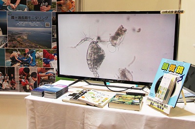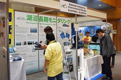 ブース出展のテーマは「湖沼長期モニタリング」。当研究所が40年以上にわたって継続している「霞ヶ浦長期モニタリング」、30年以上にわたって継続している「摩周湖長期モニタリング」、昨年度に設置した 「琵琶湖分室」の研究の概要や成果、今後の展望について、ポスターや映像、生物展示などを通して伝えました。