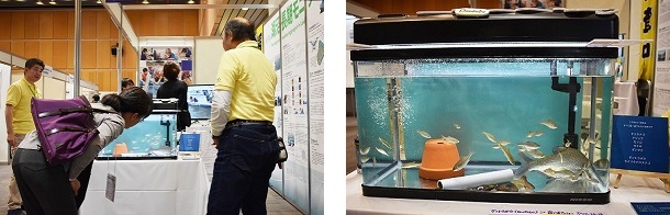 思わず来場者が立ち止まるような仕掛けとして、霞ヶ浦に生息するウナギなどの在来種や、ダントウボウなどの外来種を観察できる水槽を設置しました。すると、多くの来場者が水槽に惹きつけられて足を止め、これをきっかけに霞ヶ浦の魚類モニタリング、さらには霞ヶ浦や摩周湖の水質や生物のモニタリングの話題へとつなげることが出来ました。
