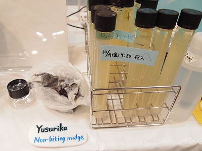 会期中の4日間(17日の展示は休会)で、のべ約400名の方がブースを訪れました。研究について広く伝えるだけでなく、「ユスリカが湖の水をきれいにしていることを初めて知った」、「データベースを研究で使用したことがあって大変役立った。」、「このような地道な研究やデータ集めを一企業が行うことは難しいが、研究機関が進めてくれるので助かる。」 などの来場者の様々な声を伺える貴重な機会となりました。