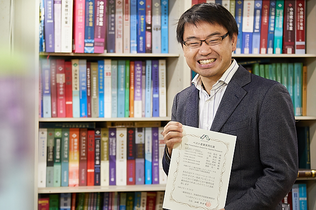 受賞のご連絡をいただいた時は、周りの音が聞こえなくなるくらい大変驚きました。他のブースを見回すと、素晴らしい成果を魅力的にプレゼン発表されている強大なライバル達がいらっしゃったので、今も「まさか…」という気持ちです。あの高名な江崎玲於奈先生から、表彰状を手渡しされた時は、本当に感極まりました。
