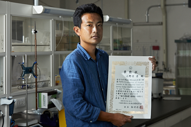 本賞を励みとして、本研究を発展させることで、処理技術の解明や性能向上、そして水環境の評価等への適用を目指して、研究を進めて参りたいと考えております。