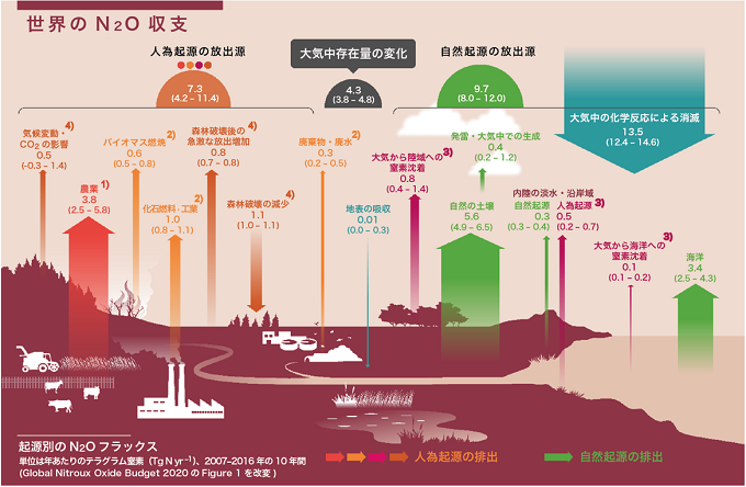 世界の一酸化二窒素(N2O)収支 2020年版を公開