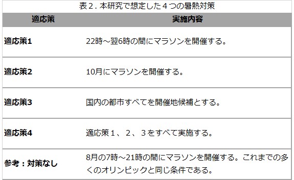 夏季五輪マラソンへの気候変動による暑熱の影響と複数の適応策がもたらす効果を明らかにしました