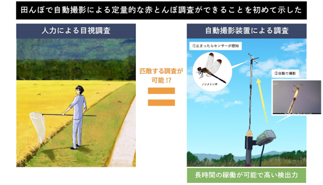 自動撮影によって赤とんぼの定量的調査に成功