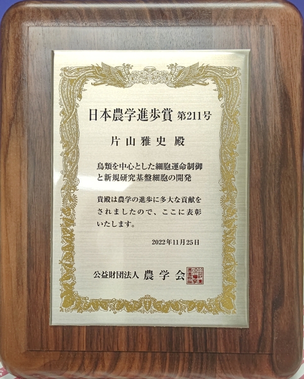 片山 雅史 研究員が公益財団法人農学会より第21回日本農学進歩賞を受賞