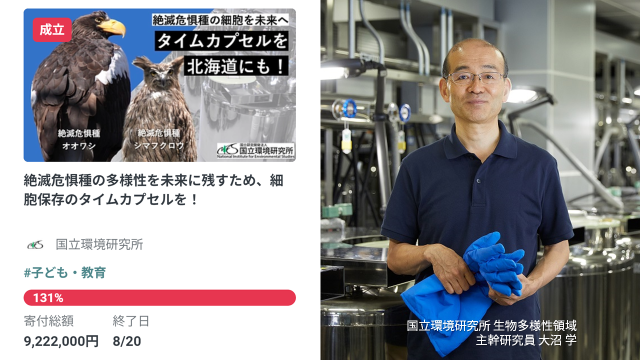 2023年6月22日〜8月20日まで、弊所は「絶滅危惧種の多様性を未来に残すため、細胞保存のタイムカプセルを!」と題したクラウドファンディングを実施いたしました。この度、みなさまのあたたかいご支援により、我々の目標金額を達成し、無事に終了しました。