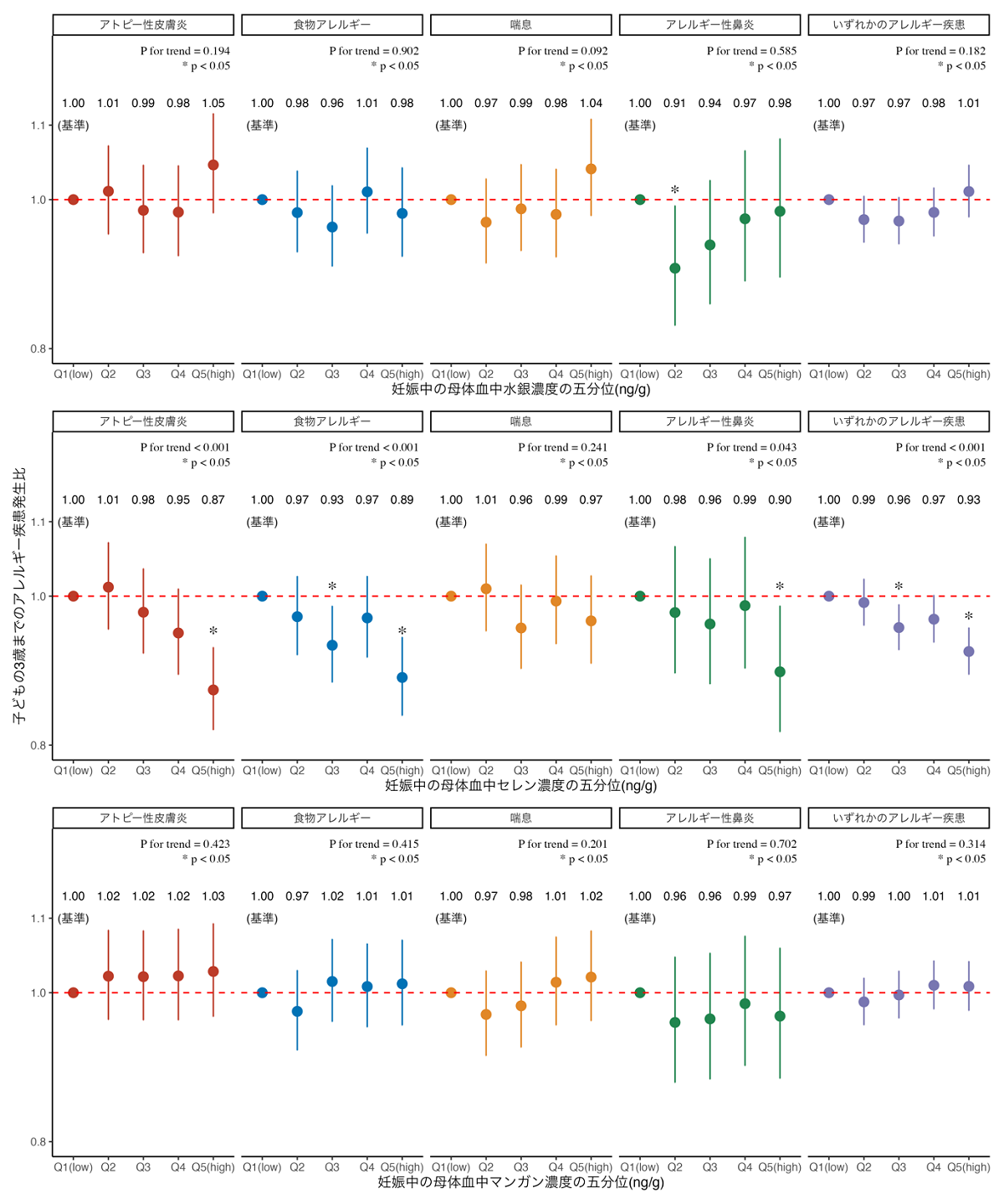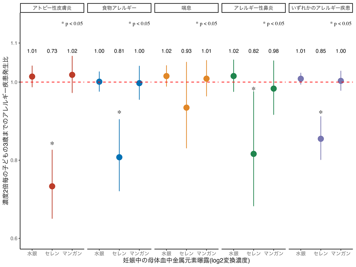 出生前の水銀、セレン、マンガンばく露と3歳までの子どものアレルギー疾患発生リスクとの関連 :エコチル調査