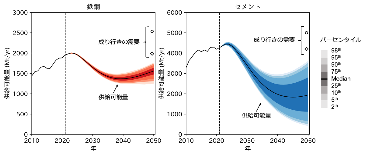 これらの結果は、社会基盤材料が豊富で安価に手に入る時代の終わりを示唆するとともに、CCUSやグリーン水素の利用のみに依存した脱炭素計画の危険性を強調するものです。鉄鋼・セメント部門の脱炭素化に向けては、関連インフラの整備を着実に進める一方、カーボンニュートラル社会と整合的な材料供給の世界的不足に社会全体で備える必要があります。