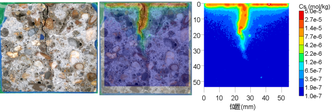 ひび割れたコンクリートへのCs-137の浸透の再現