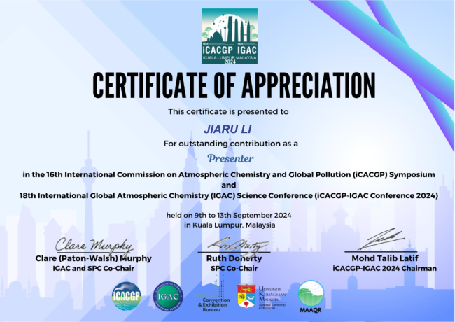 授賞機関: The 16th International Commission on Atmospheric Chemistry and Global Pollution (iCACGP) Symposium and 18th International Global Atmospheric Chemistry (IGAC) Science Conference (iCACGP-IGAC Conference 2024)