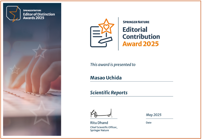 受賞対象: Springer Natureの学術誌「Scientific Reports」におけるEditor活動に関する貢献