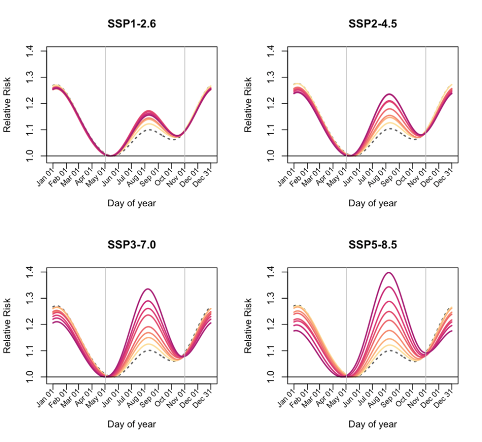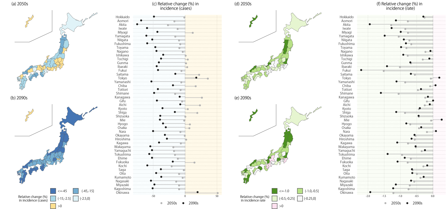 また、人口減少の影響により件数は将来的に横ばいまたは減少に転じる可能性がある一方で、年間発生率はすべてのシナリオにおいて2090年代まで増加し続けることが予測されました。本研究の成果は、気候変動と人口高齢化が進む中で、救急医療サービスを最適化するためには、開発戦略と季節間の資源配分を慎重に検討する必要があることを示しています。
