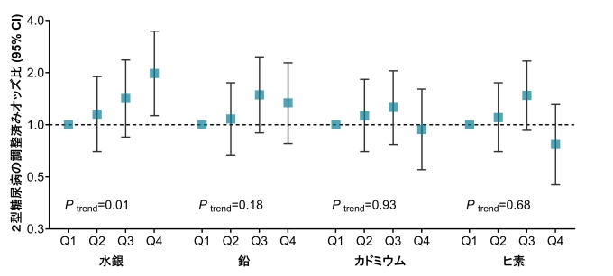 カドミウム、水銀、鉛、ヒ素の血中濃度と2型糖尿病リスク
