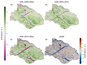 北海道大学大学院農学研究院の加藤知道教授と同大学北方生物圏フィールド科学センター中路達郎教授、東京大学大学院農学生命科学研究科、国立環境研究所生物多様性領域の林 真智特別研究員らの研究グループは、北海道大学北方生物圏フィールド科学センター苫小牧研究林の天然広葉樹が優占する森林約2,516 haを対象に、2004年の台風かく乱後の森林バイオマス回復を、多時期の航空機レーザ測量*1及びUAV(無人航空機)レーザ測量と現地調査を統合して18年間(2004–2022年)追跡し、その時空間動態を高解像度(2m)で定量化しました。