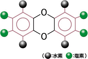 (2,3,7,8番目の炭素に塩素を付けたもの。他は水素)