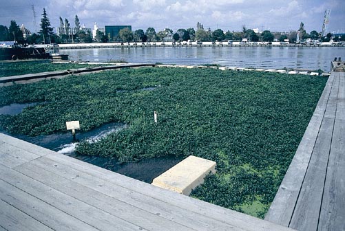 また微生物や小動物のふんや死骸が汚泥となり,この汚泥を水生ミミズなどが食べることによっても生物濃縮が進みます。植物は汚泥から栄養塩を吸収し成長します。水耕生物ろ過システムは,これら成長した植物と泥,魚などをその水域から取り出すことによって栄養塩や濁りを除去するだけでなく,植物を堆肥化したり販売することで資源の有効利用にもつながります。