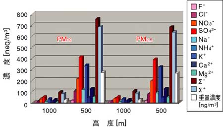今回の観測において,エアロゾルの化学成分の濃度には次のような特徴がありました。