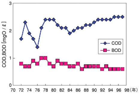 図1 琵琶湖北湖におけるCODとBODの経年変化