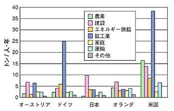 図1 国民一人当たりの資源需要量の国際比較(1991年)