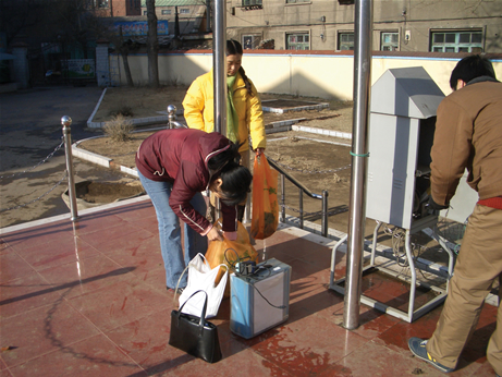 調査は暖房期と非暖房期にそれぞれの家について7日間ずつ行いました。フィルターは基本的に24時間ごとに交換しなければなりませんので、毎日午前中にCDCのスタッフが、調査協力してくれた住戸を訪問して、フィルターを交換しました。フィルターは、捕集の前後に室温と湿度を一定に管理している天秤室に24時間以上放置し、秤量には最小表示単位が0.1μgの電子天秤を使用しました。このような計測施設は瀋陽にはありませんので、捕集したフィルターの計測や分析はすべて国立環境研究所で行いました。