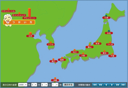 さらに、より多くの方々にライダーによる観測結果を見ていただくために、ライダーで観測された地上付近の黄砂の推定濃度を、環境省が発信する「黄砂飛来情報」にリアルタイムで提供しています(図4)。